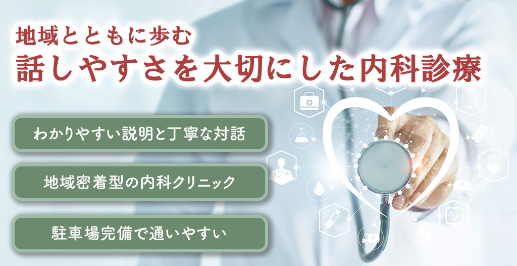 一般内科診療、上部消化管内視鏡検査など対応してまいります。地域基幹病院とも連携しておりますので、どのような症状があっても安心してご来院ください。